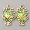 Сплавочные подвески для размещения стразов,с акриловым чешуйчатым сердцем,реальный 16k позолоченный,желто-зеленые