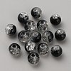 50шт прозрачные стеклянные бусины с кракле,круглые,чёрные