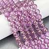 Нити матовых прозрачных стеклянных бусин,с золотой порошок,круглые,слива