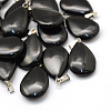 Подвески из натурального обсидиана в форме слезы,с латунной фурнитурой платинового цвета,