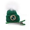 Рождественские аксессуары для волос,вязаная шапка из ткани со стразами, заколка для волос из кожи аллигатора,с железным зажимом,зелёные