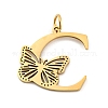 Ионное покрытие(ip) 201 подвески из нержавеющей стали, письмо с подвесками-бабочками, золотые, буква С, 26.5x26.5x1.5 мм, Кольцо: 7x1 mm, отверстие : 5 мм(STAS-N103-184G-C)