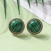 Полукруглые серьги-гвоздики из латуни с микропаве из кубического циркония,с синтетическим малахита,долговечный,стойки покрытие,