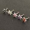 Лабреты из нержавеющей стали 304 с кубическим цирконием без резьбы,цветок,цвет нержавеющей стали,оранжево-красный
