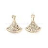 Brass Micro Pave Cubic Zirconia Pendants, Fan Charms, Real 14K Gold Plated, 15x12.5x3mm, Hole: 1.2mm