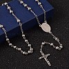 Non-Tarnish Crucifix Cross Stainless Steel Rosary Bead Necklaces, 304 Stainless Steel Chain with 201 Stainless Steel Findings, For Easter, Stainless Steel Color, 27.6 inch(70cm)