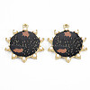 Подвески из сплава с принтом в стойку,с эмалью и абс пластика имитация жемчуга,без кадмия, без никеля и без свинца,солнце с леопардовым принтом,золотой свет,чёрные