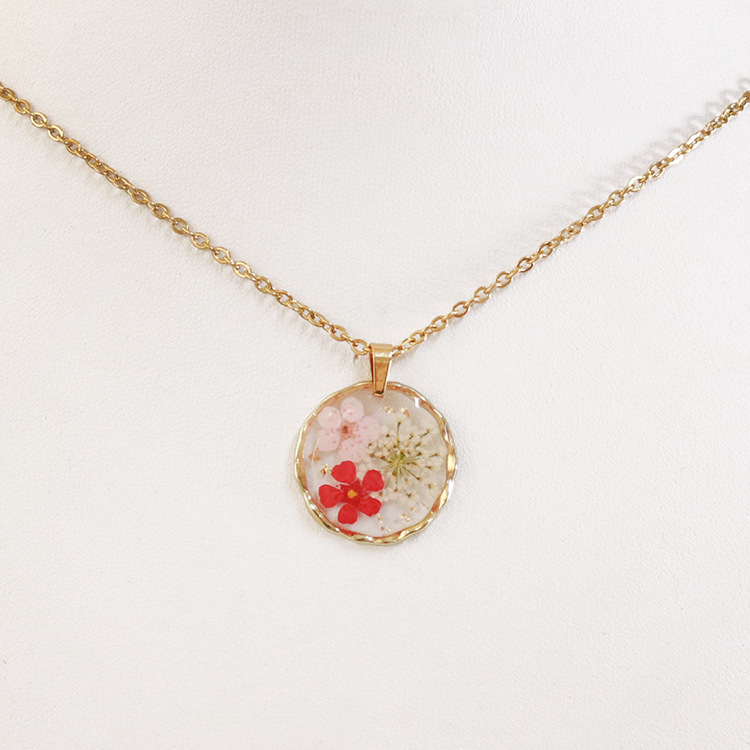 Ожерелья с плоским круглым кулоном из сплава и пластика с внутренним цветком,золотые,розовые