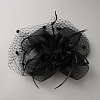 Женская шляпа с перьями для украшения вечеринки,с эластичной сеткой и заколками-утюжками из кожи аллигатора,чёрные