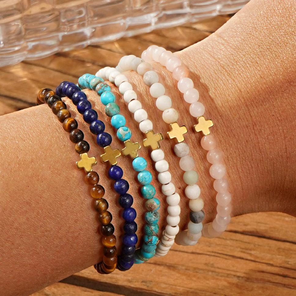 Богемный натуральный лазурит круглые бусины эластичные браслеты,крестовые немагнитные гематитовые бусины растягивающиеся браслеты,