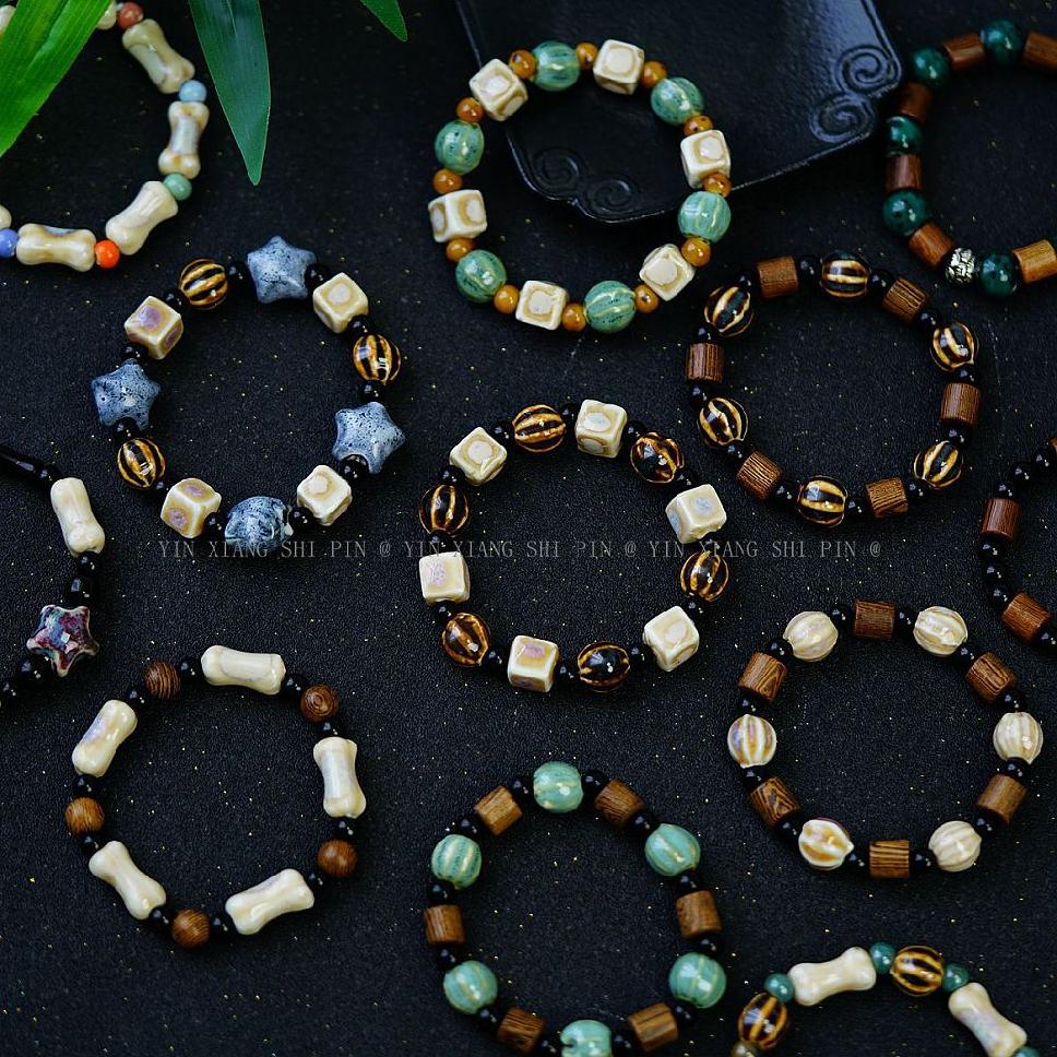 Браслеты из фарфора и деревянных бусин ручной работы в форме куба и арбуза для мужчин,средний аквамарин
