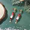 Серьги-гвоздики с подвесками из латуни с прозрачным кубическим цирконием на рождественскую тематику,со стеклянными бисеринами,золотые,Дед Мороз