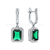 Серьги-кольца из стерлингового серебра с прямоугольным стеклом для женщин,зелёные