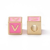 Стойки покрытие латунь эмаль бисер, без кадмия, без никеля и без свинца, реальный 18k позолоченный, куб с письмом, розовый жемчуг, letter.v, 6x6x6 мм, отверстие : 2.5 мм(KK-B060-04G-05V)