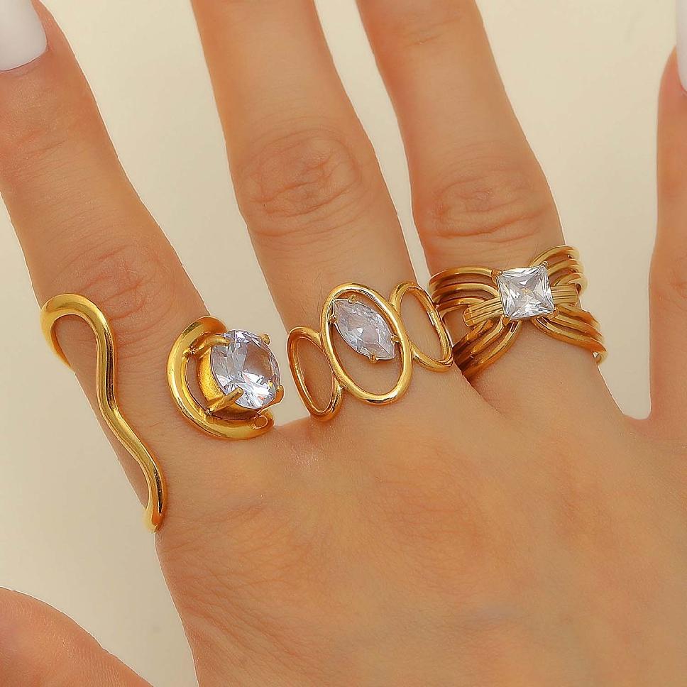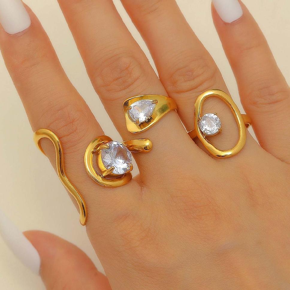 Комплекты колец-манжет из нержавеющей стали 304 с кубическим цирконием для женщин,разнообразные,реальный 18k позолоченный