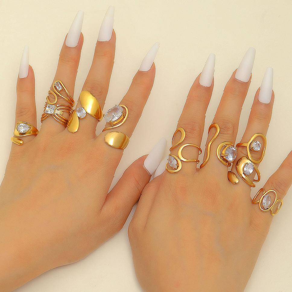 Кольца-манжеты из нержавеющей стали 304 с кубическим цирконием для женщин,реальный 18k позолоченный,самородки