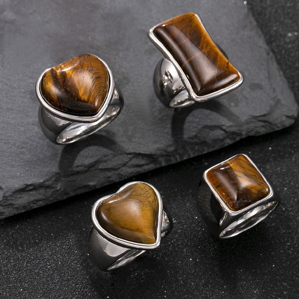 Кольца из нержавеющей стали 304 с натуральным тигровым глазом для мужчин,цвет нержавеющей стали,сердце