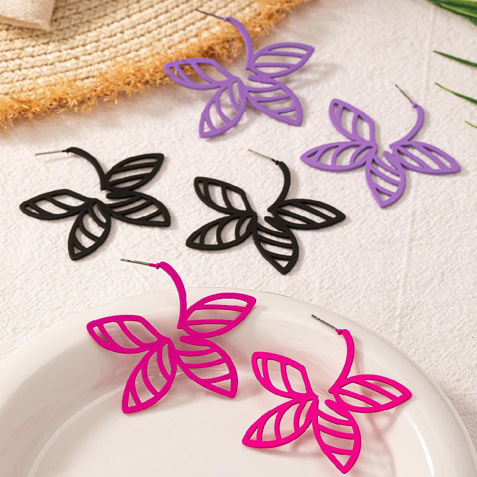 Alloy Stud Earrings, Flower, Black, 48x43mm Alloy Stud Earrings, Flower, Fuchsia, 48x43mm Alloy Stud Earrings, Flower, Dark Violet, 48x43mm