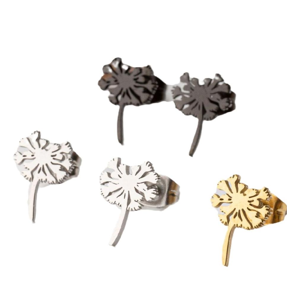 201 серьги-гвоздики из нержавеющей стали,одуванчик,розовое золото