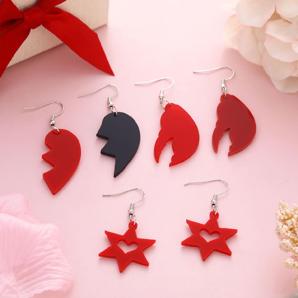 Акриловые серьги-гвоздики в форме разбитого сердца,платина,туманная роза