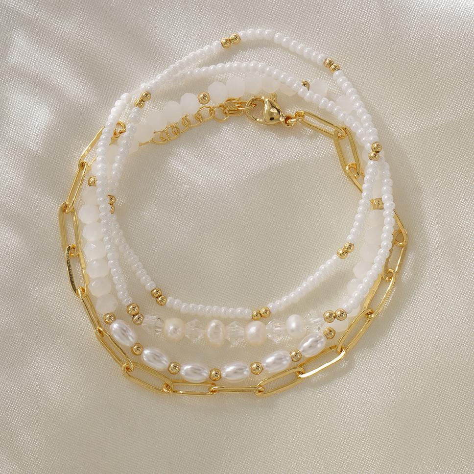 Этот стильный и элегантный многослойный браслет станет идеальным дополнением к любому наряду..разработан с использованием изысканного сочетания материалов.,В нем используются нежные искусственные жемчужины.,сверкающие кристаллы,и пресноводный жемчуг,создание роскошного, но в то же время универсального образа.Браслет изготовлен из высококачественной меди и нержавеющей стали.,обеспечивающая долговечность и удобную посадку при повседневной носке.его многослойный дизайн добавляет глубину и объем,Это делает его выдающимся предметом гардероба, который дополнит как повседневный, так и формальный стиль..Доступные цветовые варианты включают классический белый и сияющее золото.,позволяя вам выбрать идеальное сочетание с вашим гардеробом.весом около 10 грамма,Это украшение ручной работы легкое и удобное.,что делает его подходящим для повседневного ношения.можно носить отдельно или в сочетании с другими аксессуарами,Этот браслет добавит изысканной элегантности и современного шарма..Благодаря своему универсальному дизайну, это идеальный подарок для близких или приятный сюрприз для себя..Оцените красоту тонкой работы и вневременного стиля с этим многослойным браслетом.,идеальное дополнение к любой коллекции ювелирных изделий.