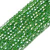 Стеклянные бусины,с покрытием AB цвета,граненые,двухконусные,зеленый лайм