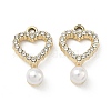 Подвески из сплава и страза,сердце подвески,uv покрытие,с абс пластмассовой имитационной жемчужиной,золотые