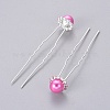 (Дефектная распродажа) женские аксессуары для волос посеребренные железные шарики вилки для волос,с имитацией абс жемчужные бусины и горный хрусталь бисером,темно-розовыми