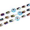Цепи ручной работы из нержавеющей стали 304,с гранёными стеклянными бусинами бочкообразной формы и техникой миллефиори, выполненной методом выдувания стекла.,плоские круглые с цветочным узором,пайки,с катушкой,цвет нержавеющей стали,Небесно-голубой