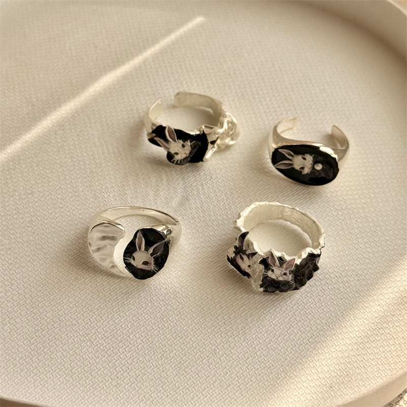 Alloy Enamel Finger Rings, Rabbit, Silver, Black, Inner Diameter: Adjustable Alloy Enamel Cuff Open Rings, Rabbit, Silver, Black, Inner Diameter: Adjustable Alloy Enamel Cuff Open Rings, Rabbit, Silver, Black, Inner Diameter: Adjustable Alloy Enamel Cuff Open Rings, Rabbit, Silver, Black, Inner Diameter: Adjustable