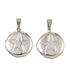 Подвески-медальоны из нержавеющей стали 316,плоский круглый с шармом в виде звезды,с защелкивающимися дужками из нержавеющей стали 304,цвет нержавеющей стали