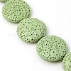 Бусы из натуральной лавы,окрашенные,плоско-круглые,темно-зеленый