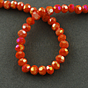 Гальванические непрозрачные стеклянные бусины, с покрытием AB цвета, граненый (32 грань), круглые, оранжево-красный, 4 мм, отверстие : 0.5 мм, около 100 шт / нитка, 14.2 дюйм(EGLA-R017-4mm-9)